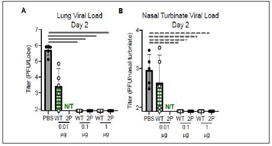 The NIH data shows that the NIH – created COVID-19 spike protein when dosed at either 0.1 or 1.0 mcg and combined with an adjuvant completely inhibited virus growth in the nasal cavities and lungs of mice when the animals were infected four weeks after their second immunization, compared to the unvaccinated control animals. The adjuvant uses was TLR-4-agonist Sigma Adjuvant System - a TLR-4 agonist that induces T cell activation in mice. Adjuvants are added to vaccines to boost immune responses.